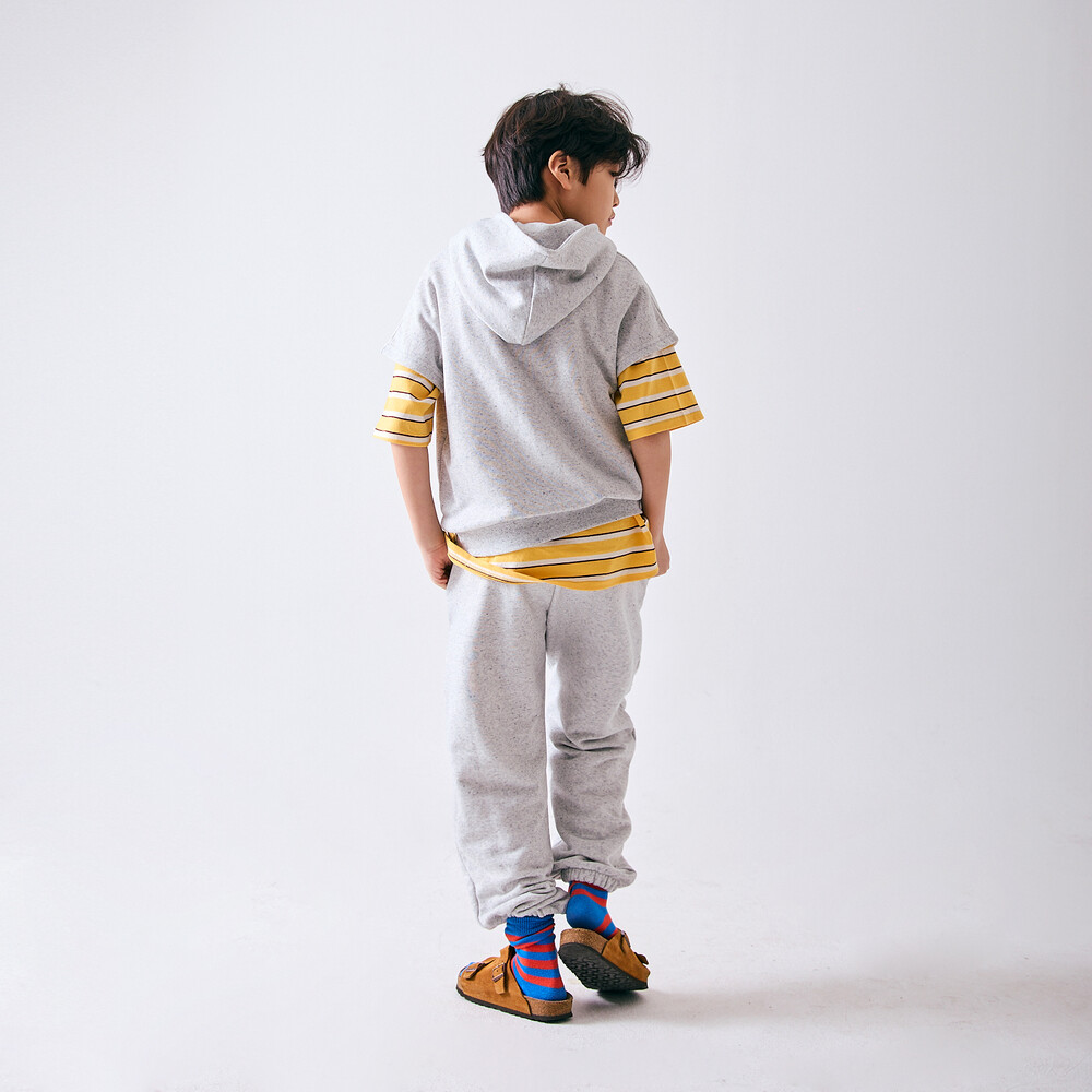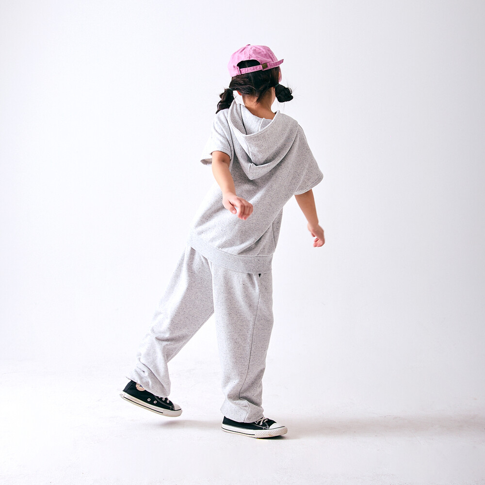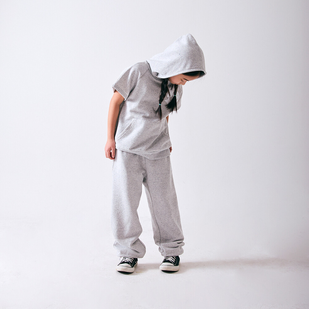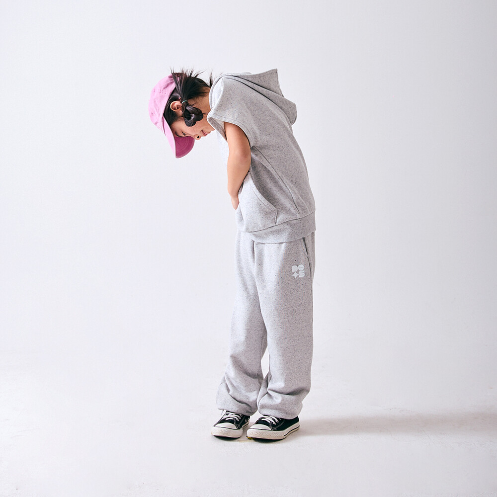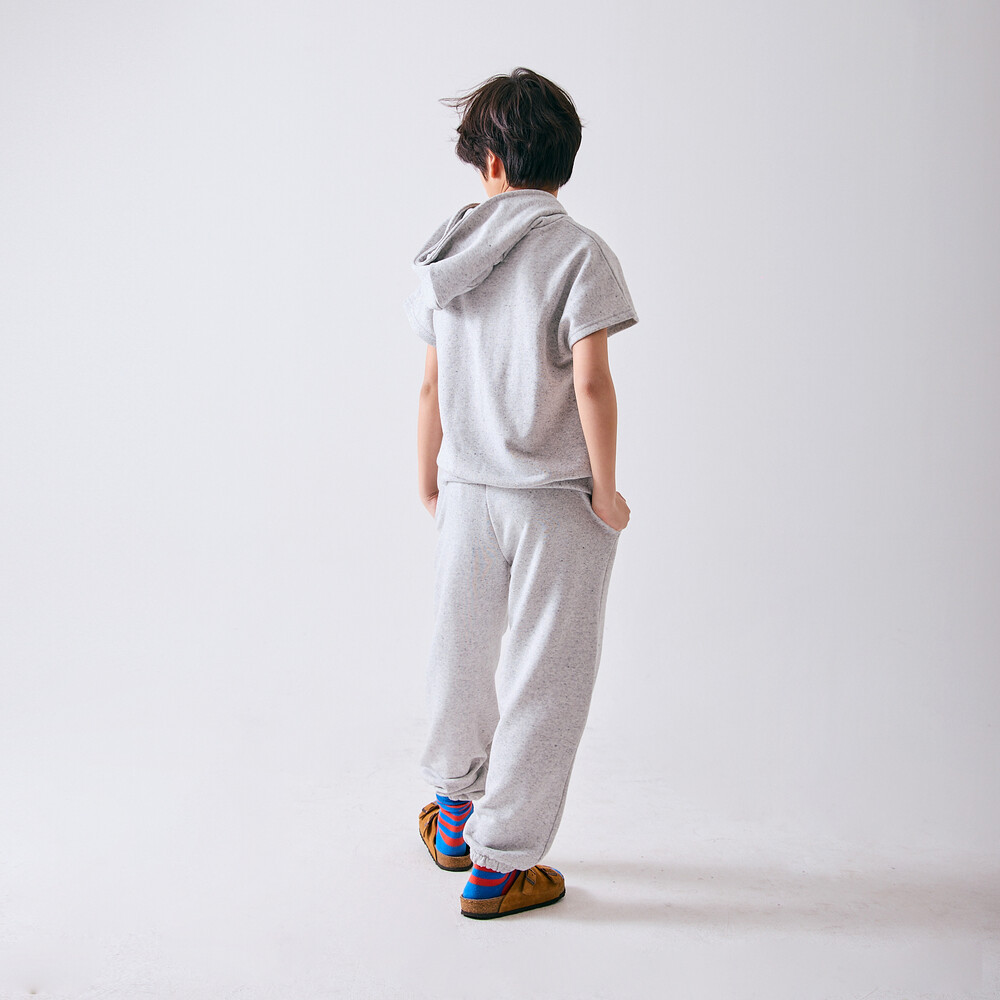 초코칩이 콕콕 받힌 듯한 면쭈리 원단으로 제작한 조거 팬츠는