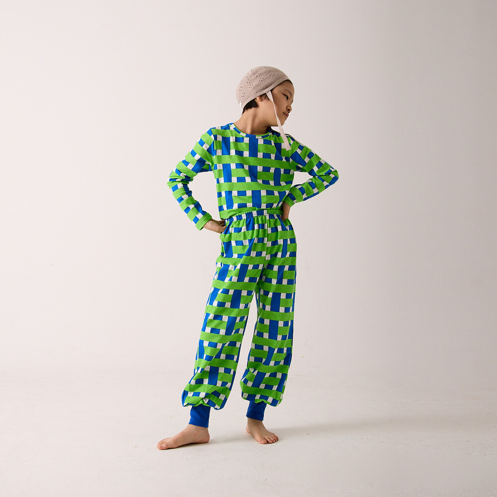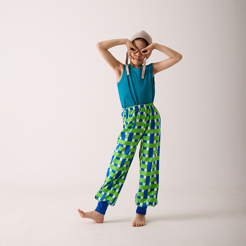 완성한 알라딘 팬츠는 편안한 활동성과 유쾌한 패턴이 돋보이는,