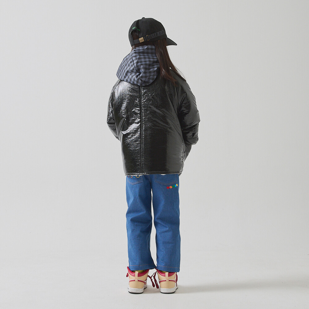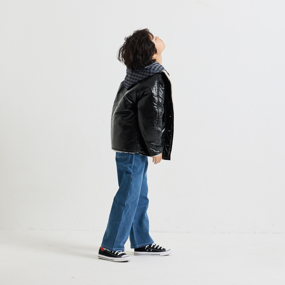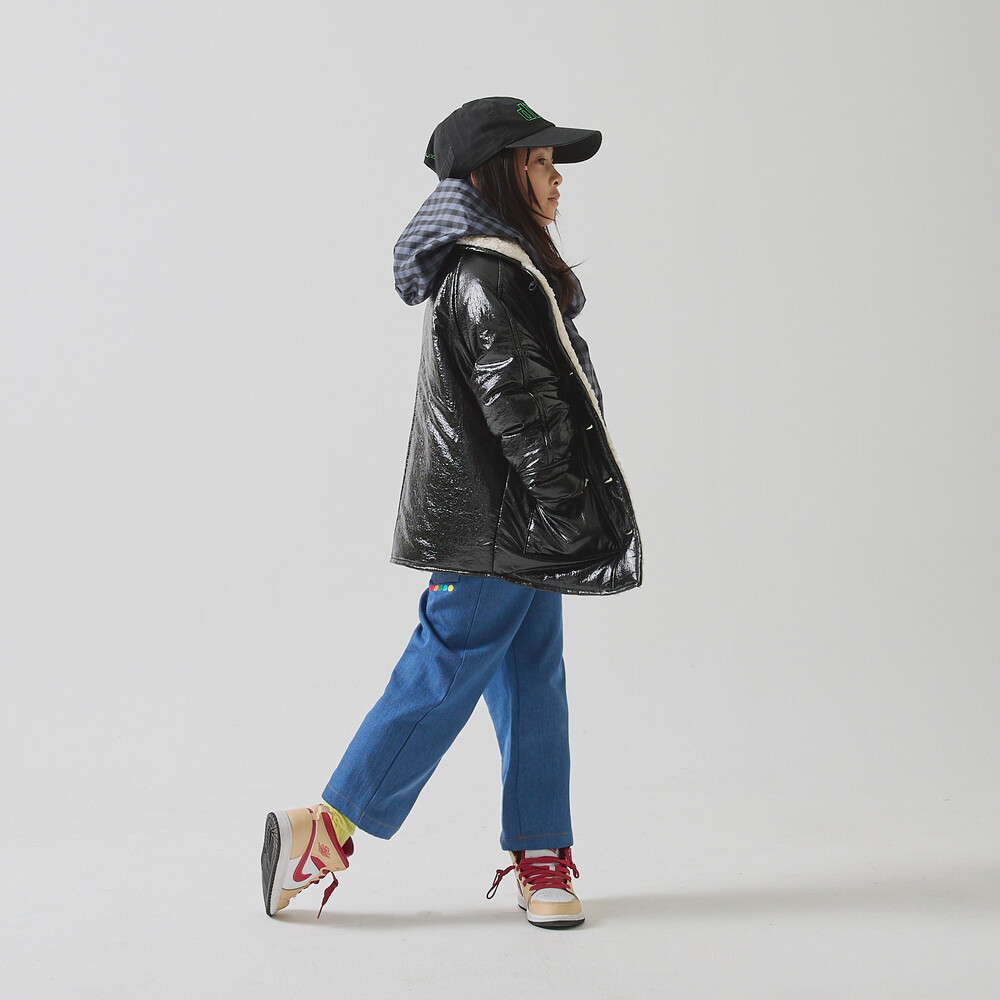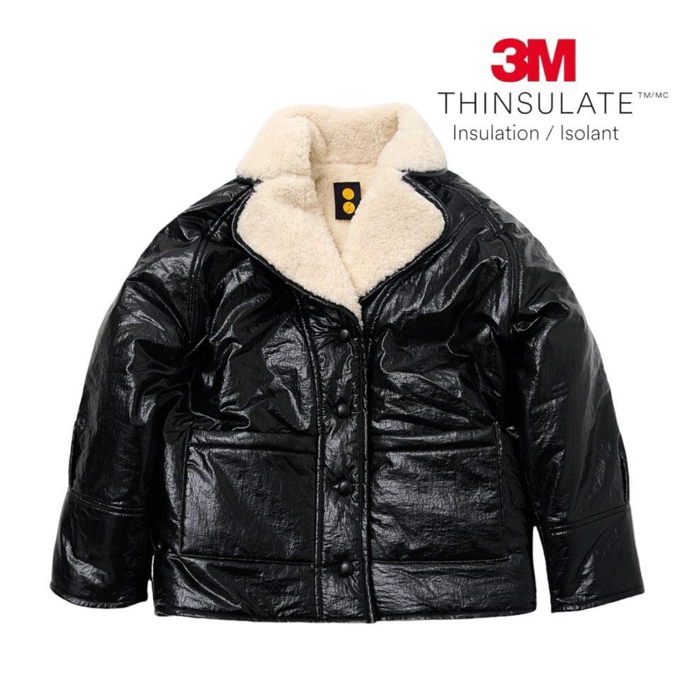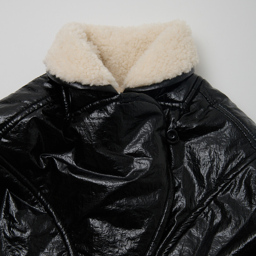 독특한 절개와 과하지 않지만 존재감 넘치는 광택을 담은 원단의 점퍼는