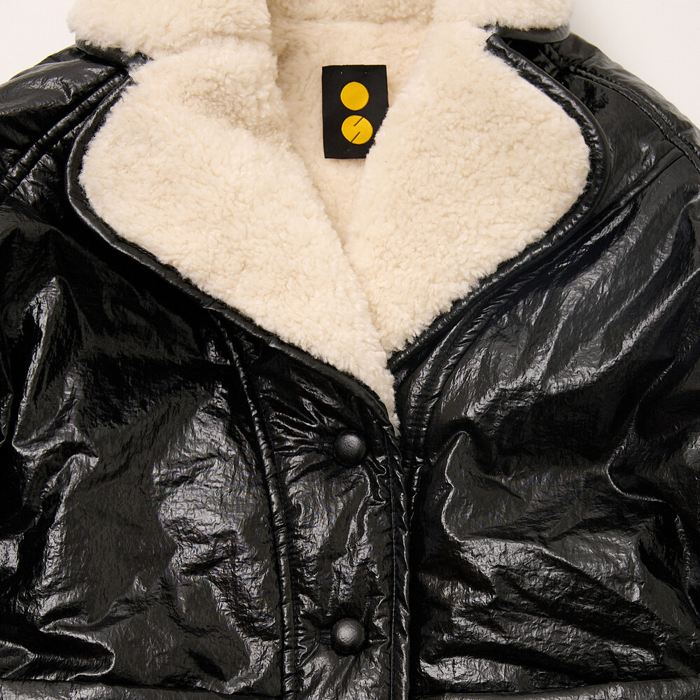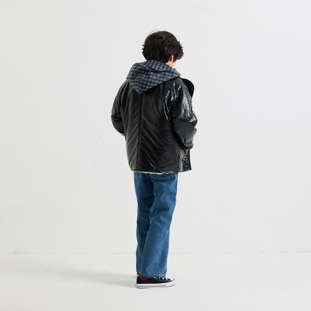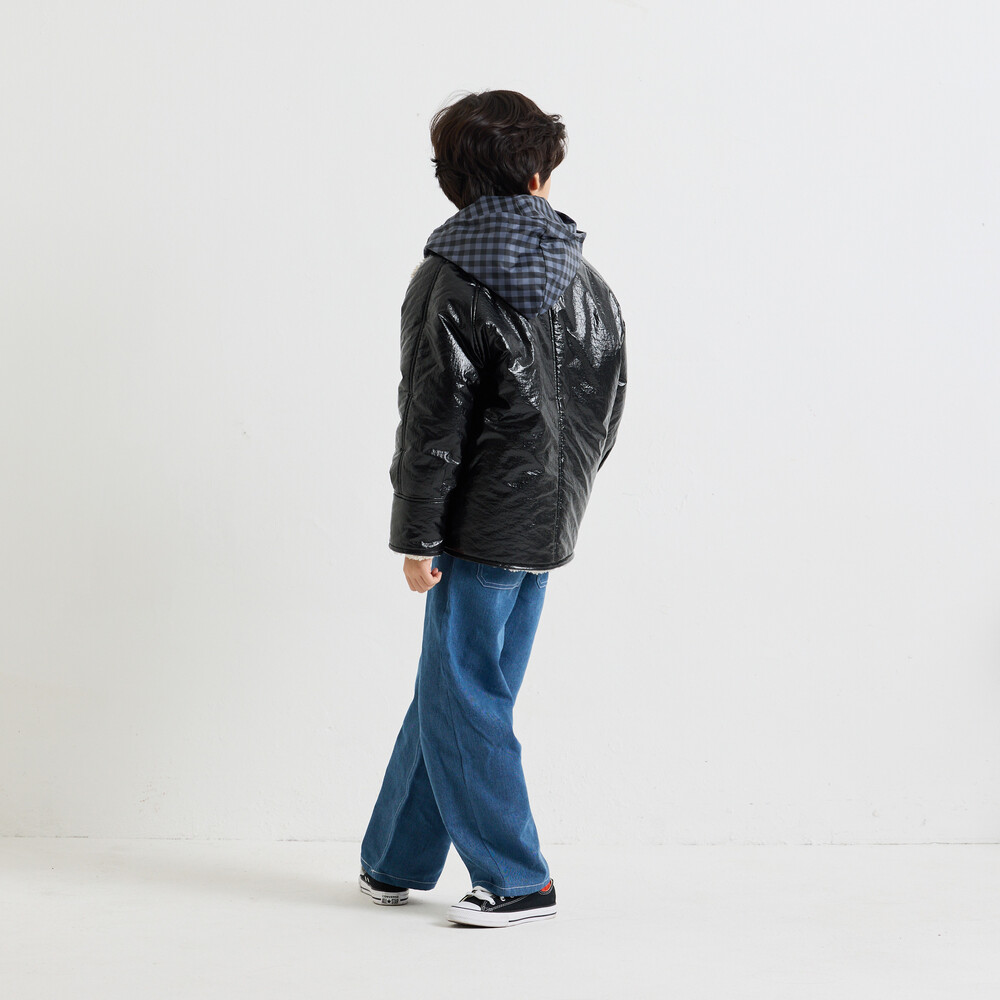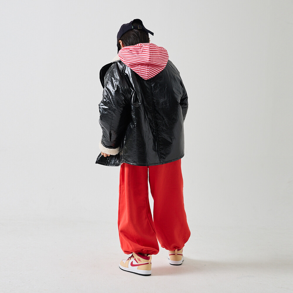 독특한 절개와 과하지 않지만 존재감 넘치는 광택을 담은 원단의 점퍼는