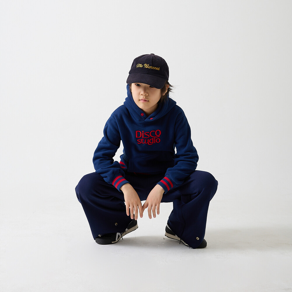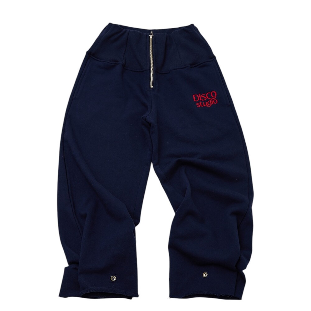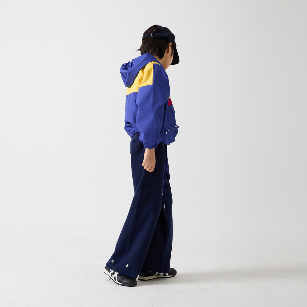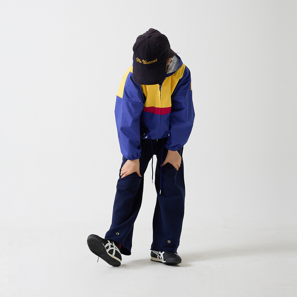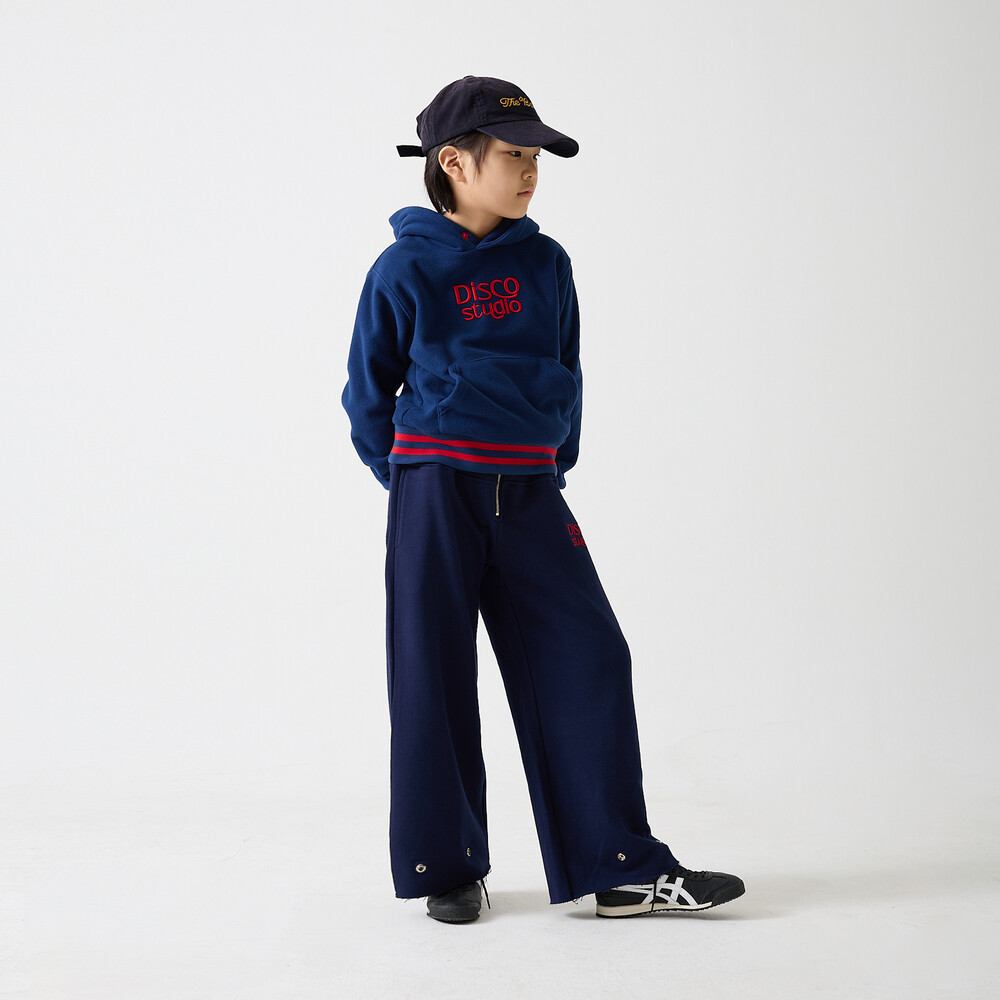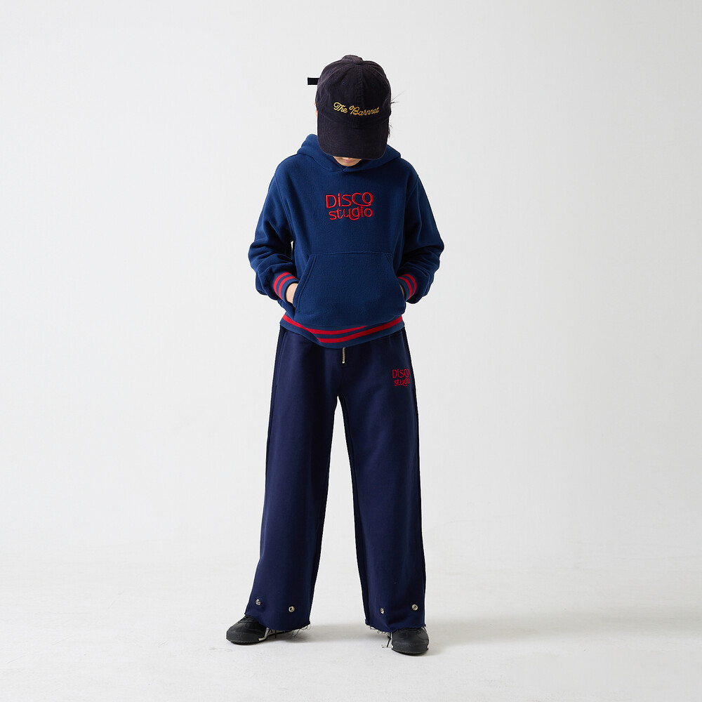 허리 밴딩 아래로 툭 떨어지는 일자핏 트레이닝 팬츠로
