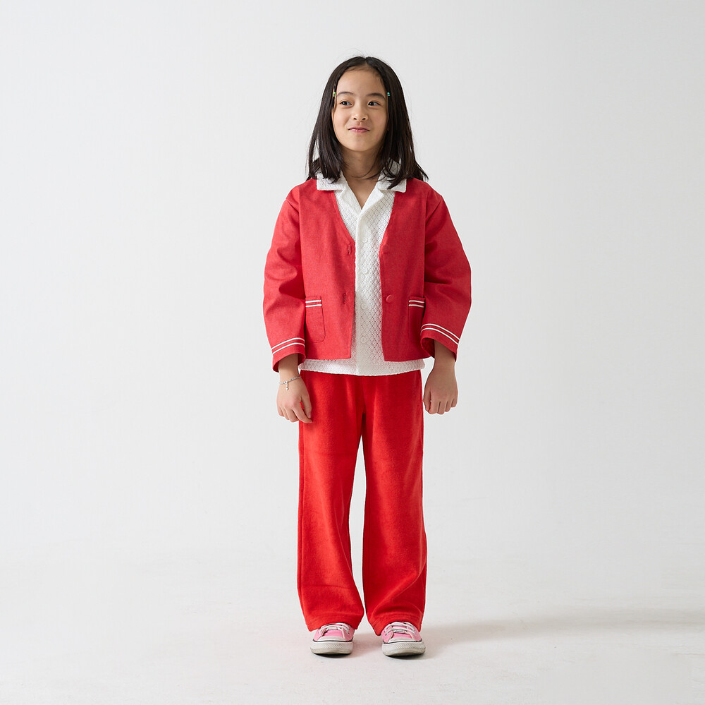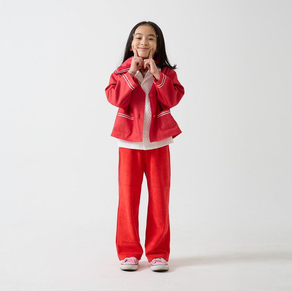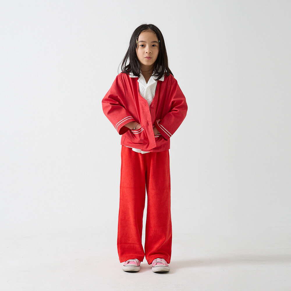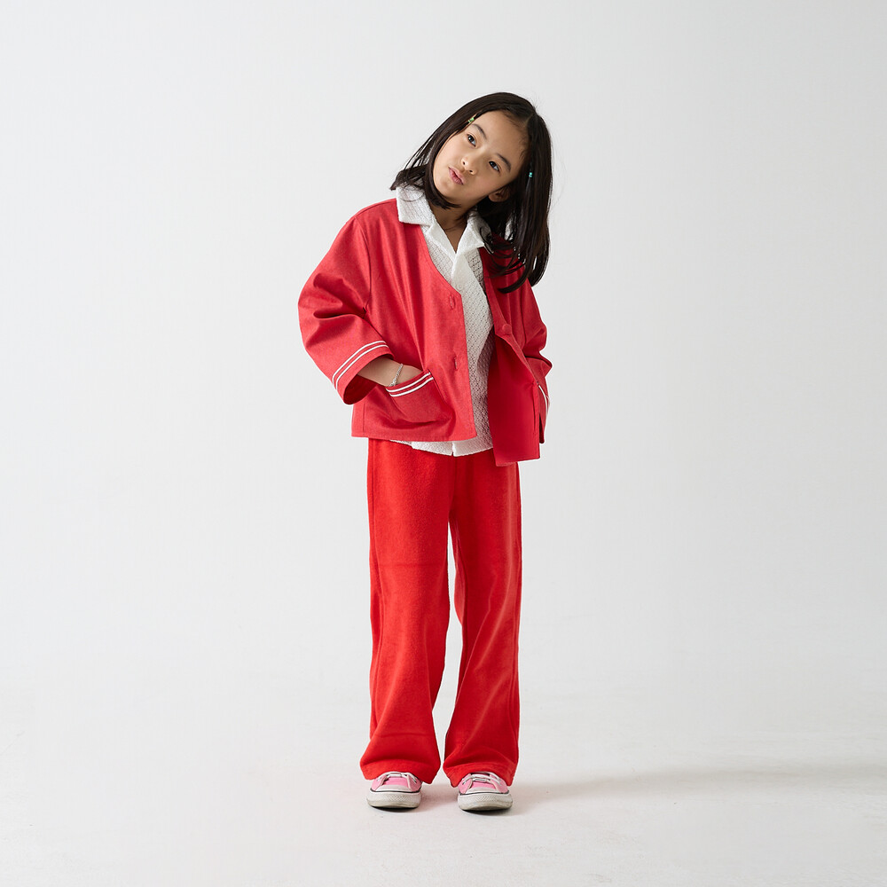 *사진의 모델은 키 123cm 몸무게 22kg로 110(L)사이즈를 착용했습니다.