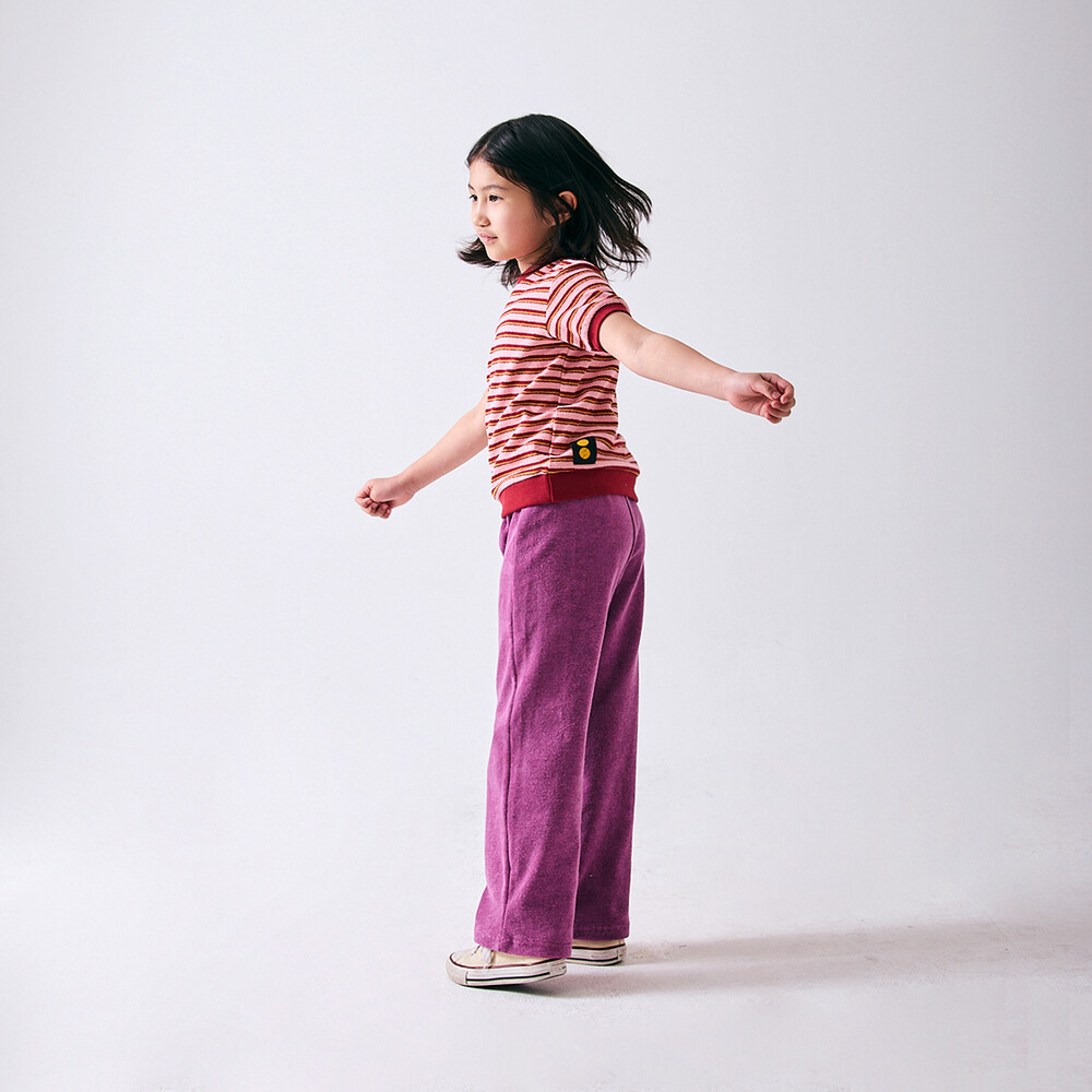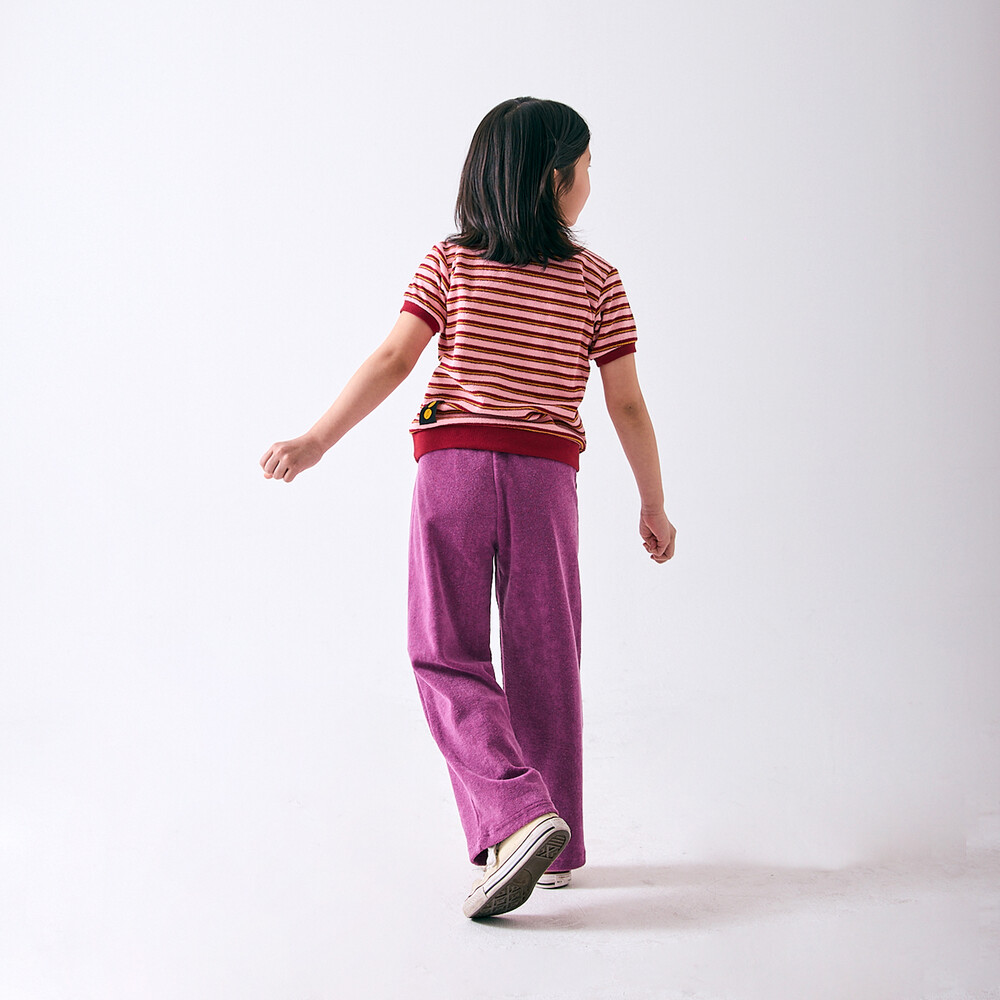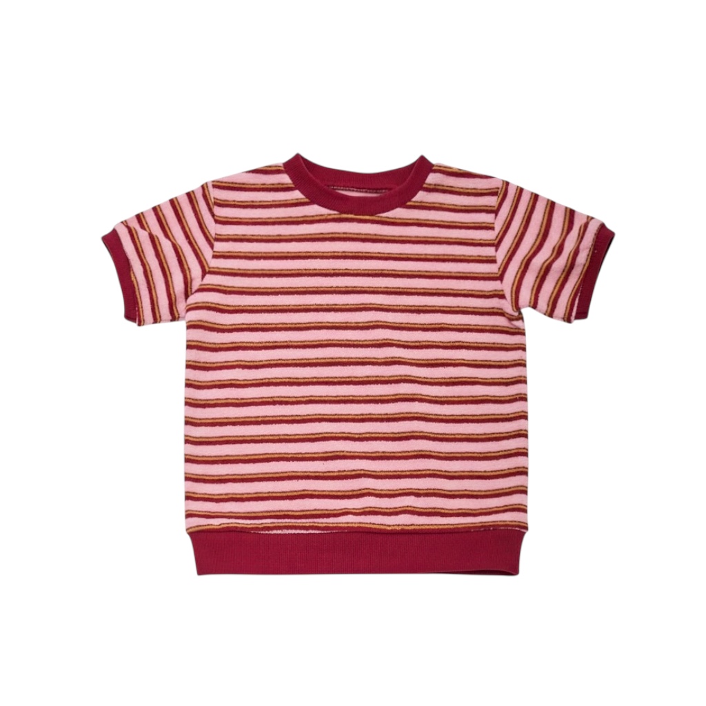 립 포인트 배색이 예쁜 스트라이프 면 100% 테리 소재의 반팔 티셔츠입니다.