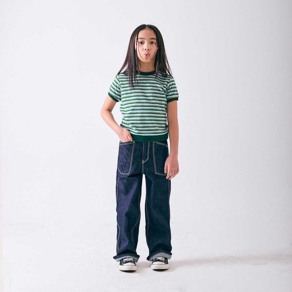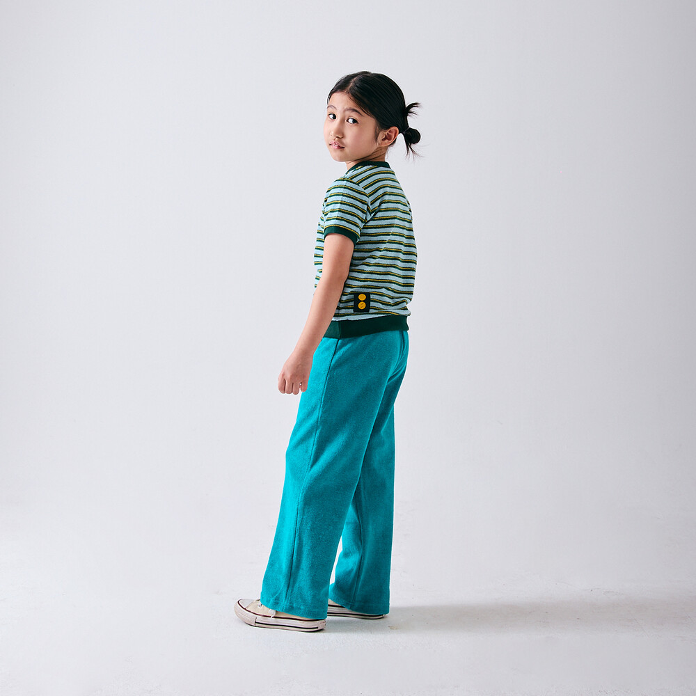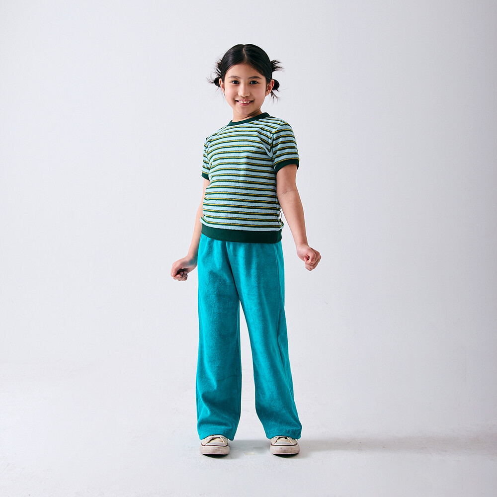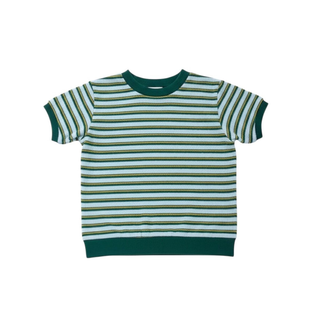 립 포인트 배색이 예쁜 스트라이프 면 100% 테리 소재의 반팔 티셔츠입니다.