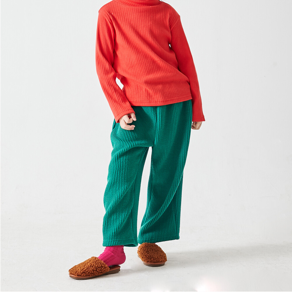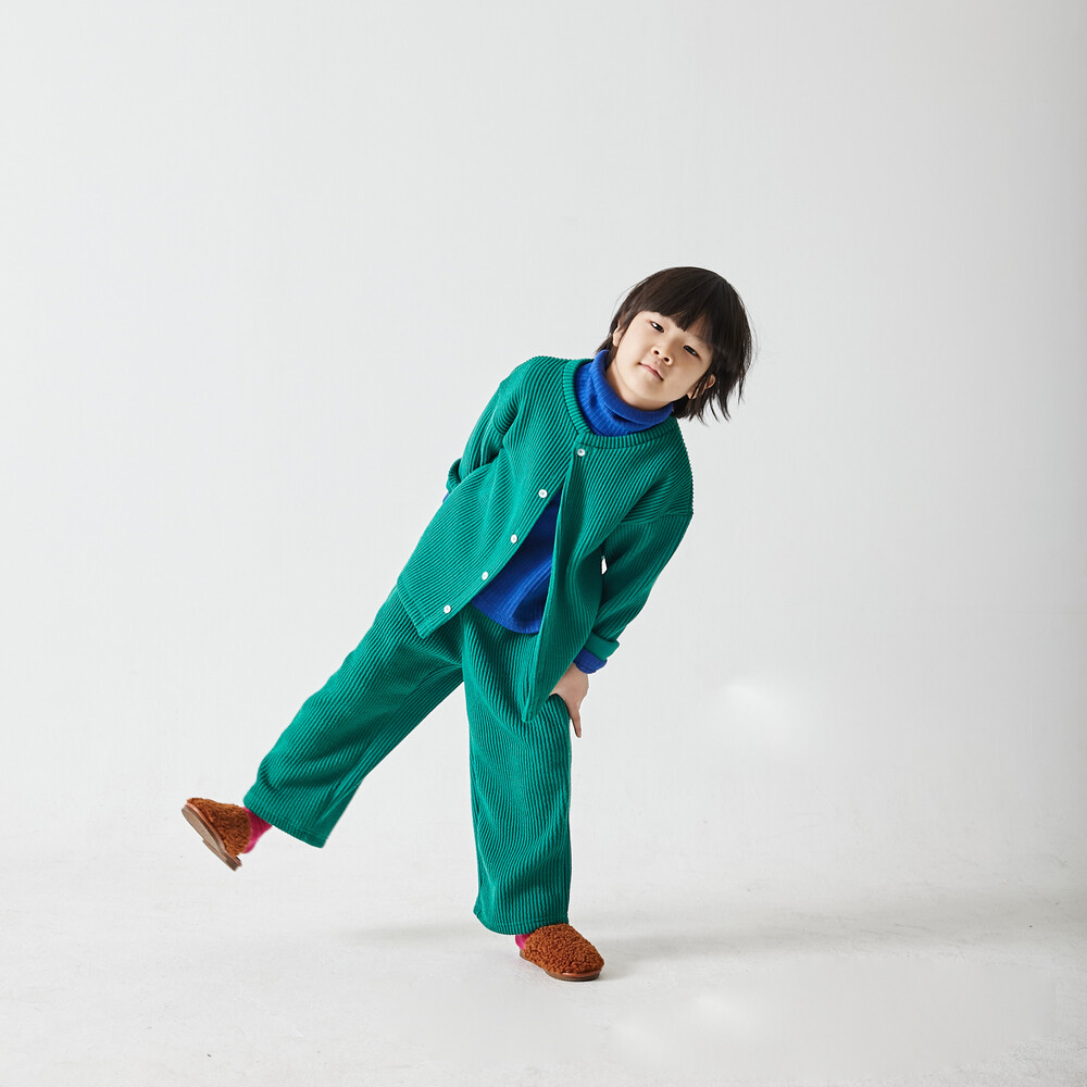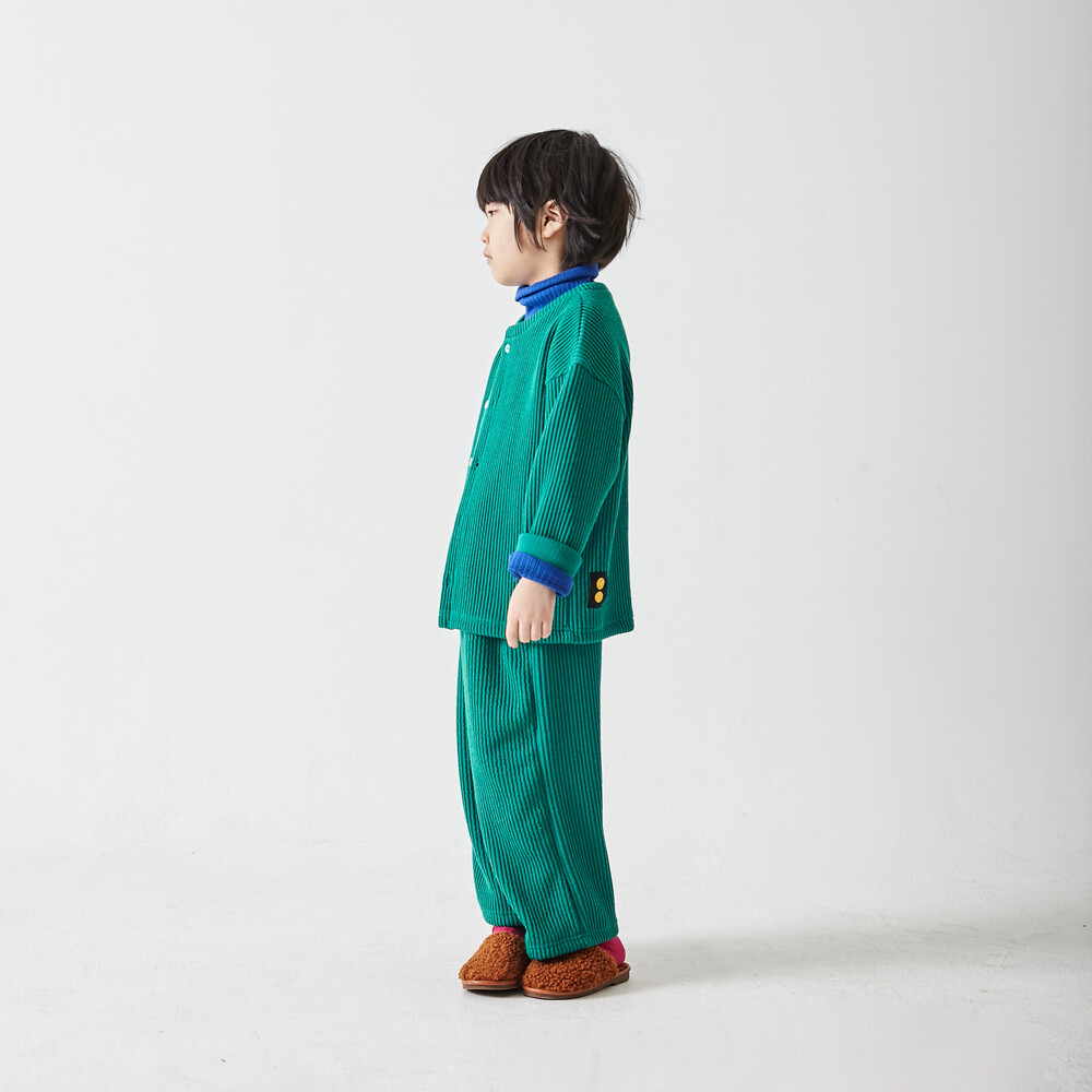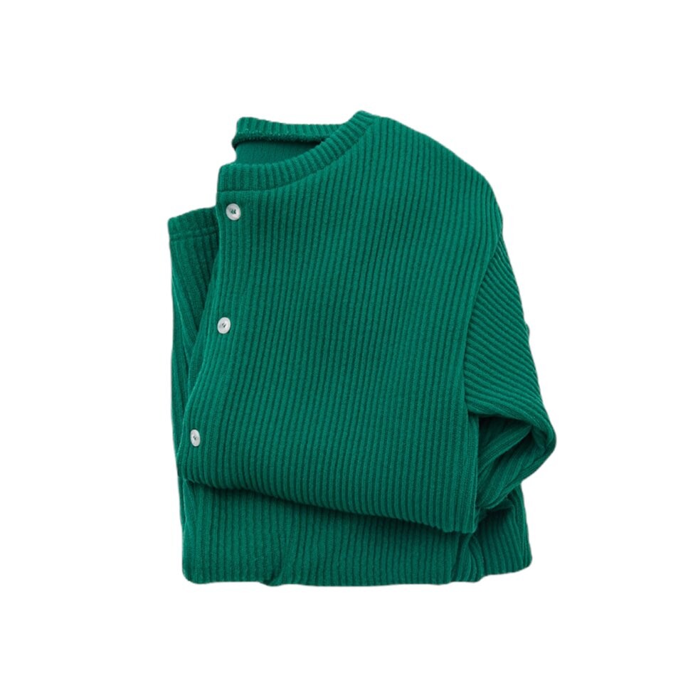 추러스를 닮은 굵은 골지 니트 원단(면, 레이온, 아크릴 혼방)의 상하복으로