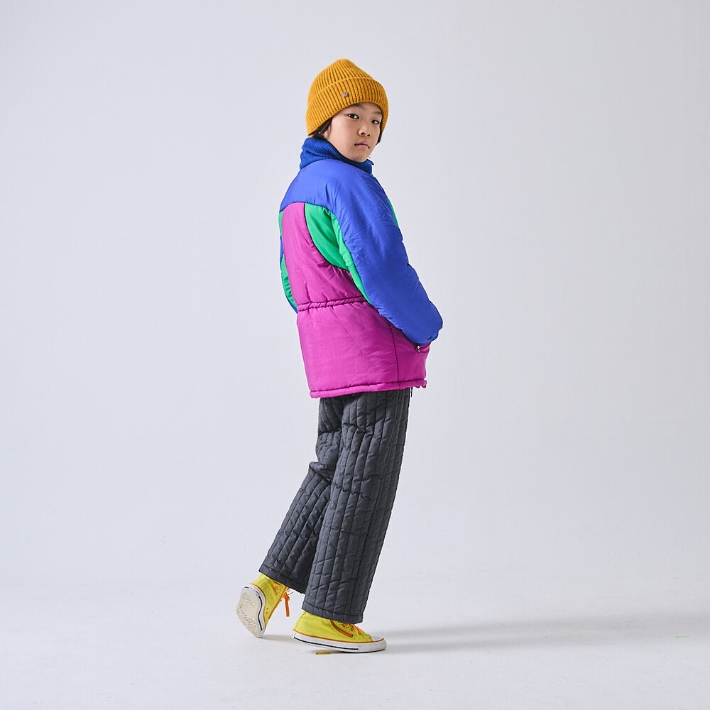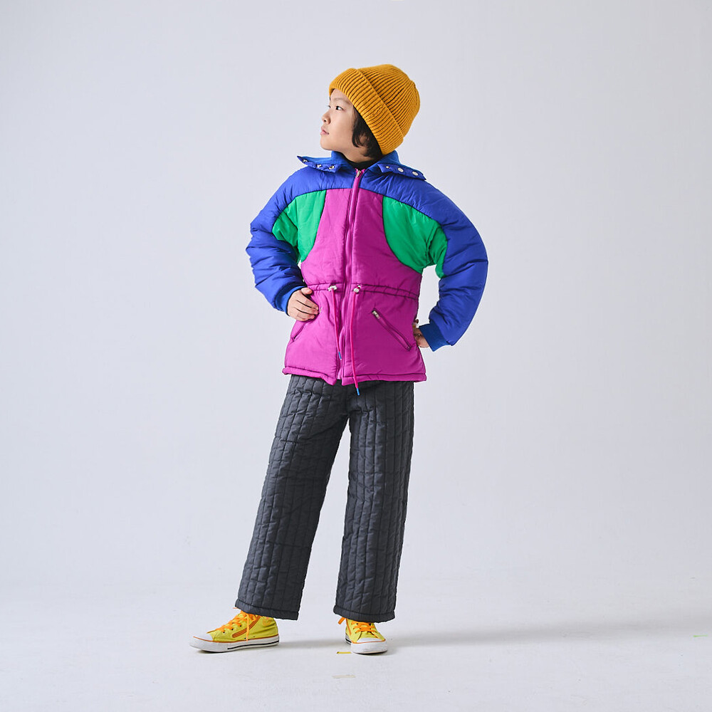 안감을 겉감과 같은 색으로 마감해 아이의 신장에 따라 접어 입어도 예쁜 디자인입니다.